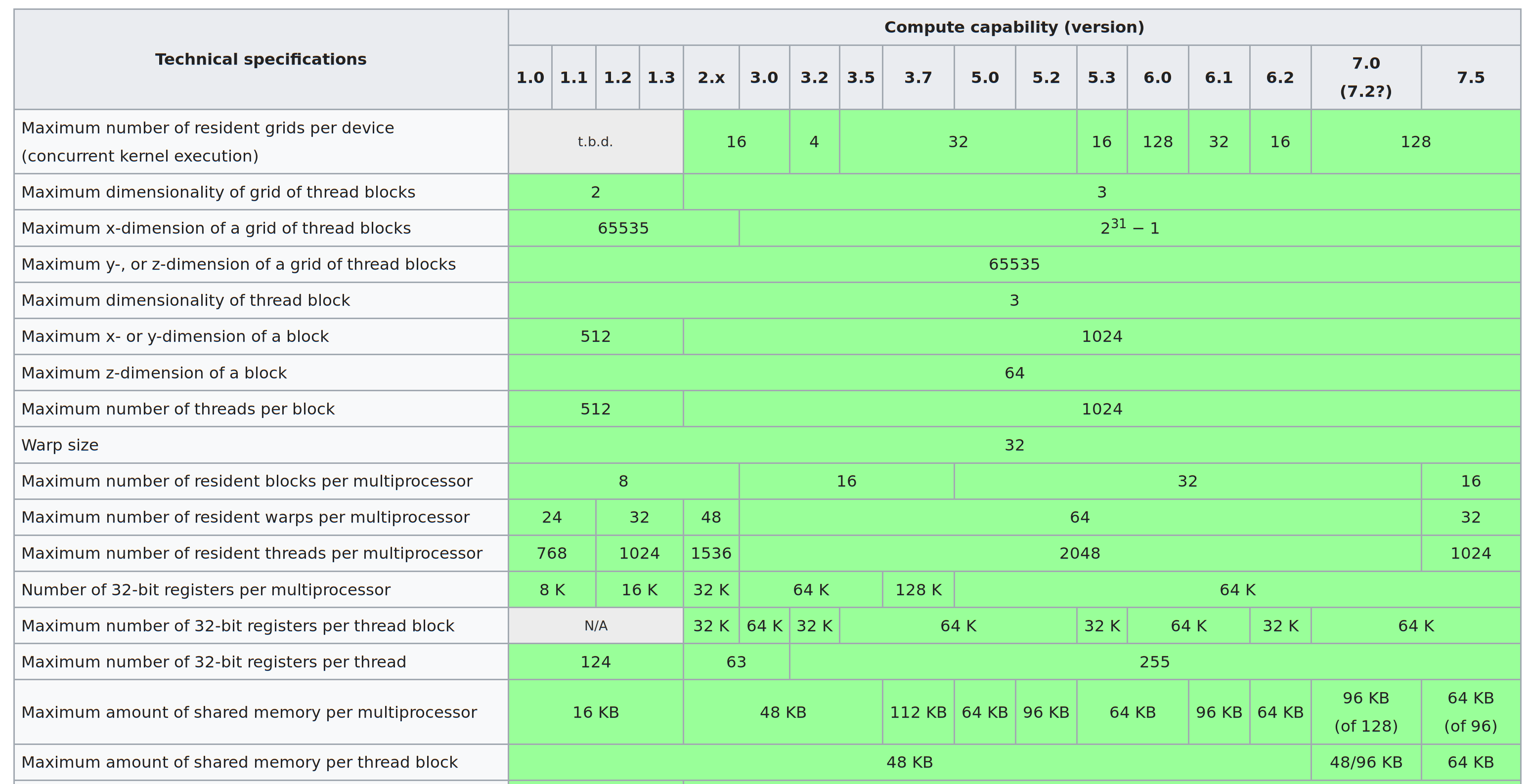 def render_c(filename): from IPython.display import Markdown with open(filename) as f: contents = f.read() return Markdown("```c\n" + contents + "```\n") render_c('add.cu')__global__ void add(int n, float *x, float *y) { int index = blockIdx.x * blockDim.x + threadIdx.x; int stride = blockDim.x * gridDim.x; for (int i = index; i < n; i += stride) y[i] += x[i]; }! nvcc -arch sm_75 --resource-usage -c add.cuptxas info : 0 bytes gmem ptxas info : Compiling entry function ‘Z3addiPfS’ for ‘sm_75’ ptxas info : Function properties for Z3addiPfS 0 bytes stack frame, 0 bytes spill stores, 0 bytes spill loads ptxas info : Used 12 registers, 376 bytes cmem[0]