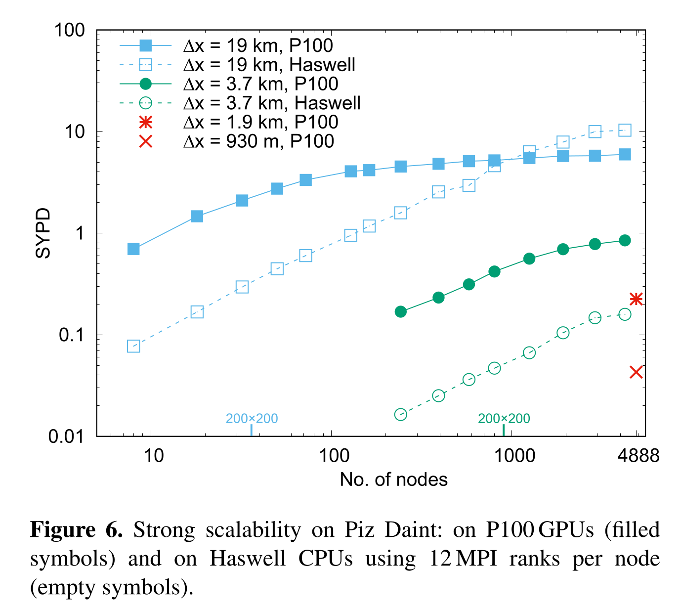 Strong scaling: fixed total problem size